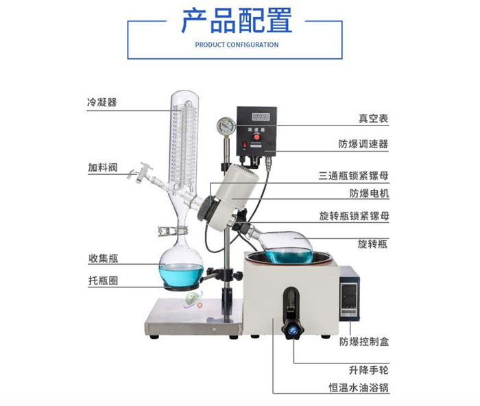 此外,旋轉(zhuǎn)蒸發(fā)器還可能包括其他輔助部件,如升降手柄、控制面板、加料閥等,以確保設(shè)備的穩(wěn)定運(yùn)行和操作的便捷性。這些部件共同協(xié)作,使旋轉(zhuǎn)蒸發(fā)器成為一種高效、可靠的蒸發(fā)設(shè)備,廣泛應(yīng)用于化學(xué)、化工、生物醫(yī)藥等領(lǐng)域。