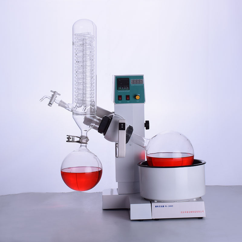 2、旋轉蒸發裝置:玻璃材質采用高硼硅玻璃(GG-17)耐高溫耐腐蝕;旋轉密封組件采用PTFE(聚四氟乙烯)和氟 膠,能在抽真空時保持高度真空度。